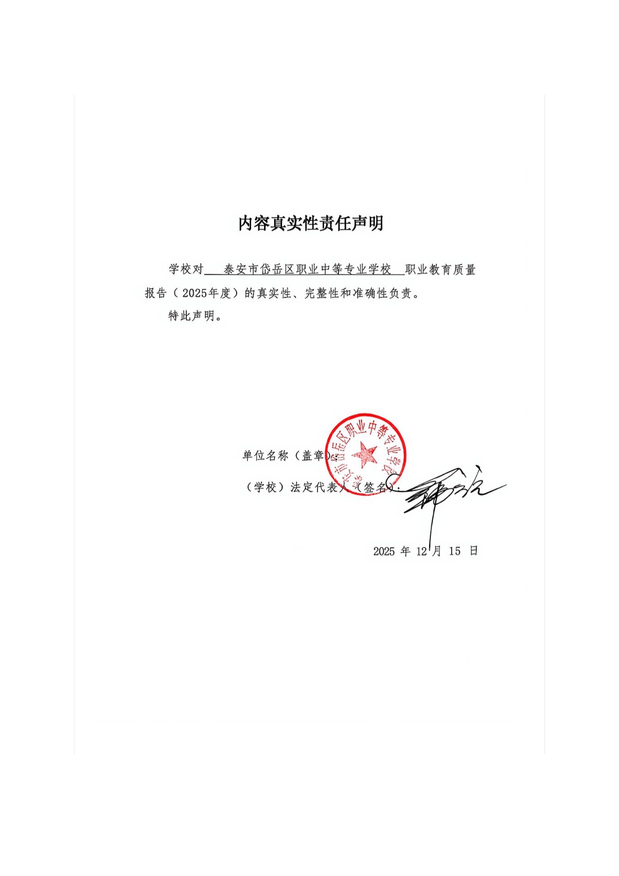 泰安市岱岳区职业中等专业学校职业教育质量报告(2025年度)
