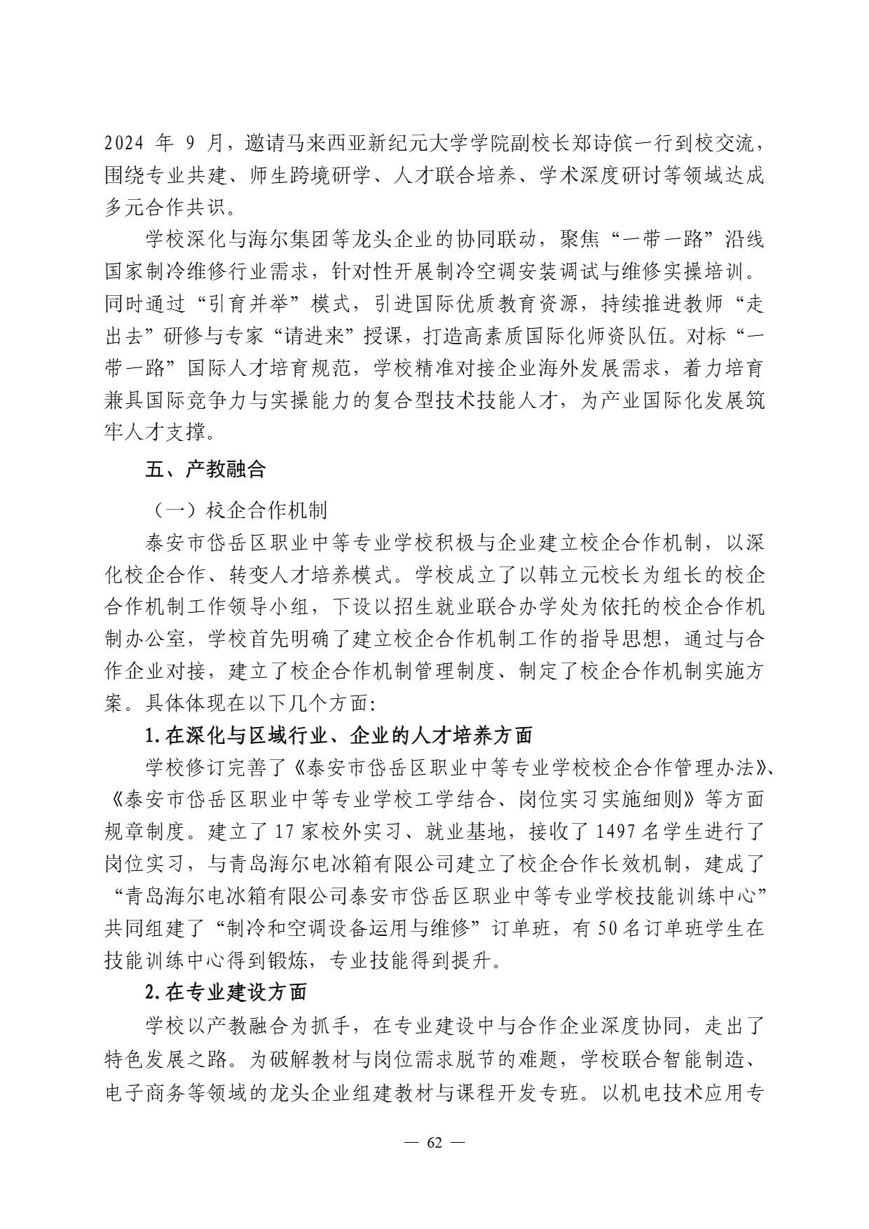 泰安市岱岳区职业中等专业学校 质量报告(2024 年度)