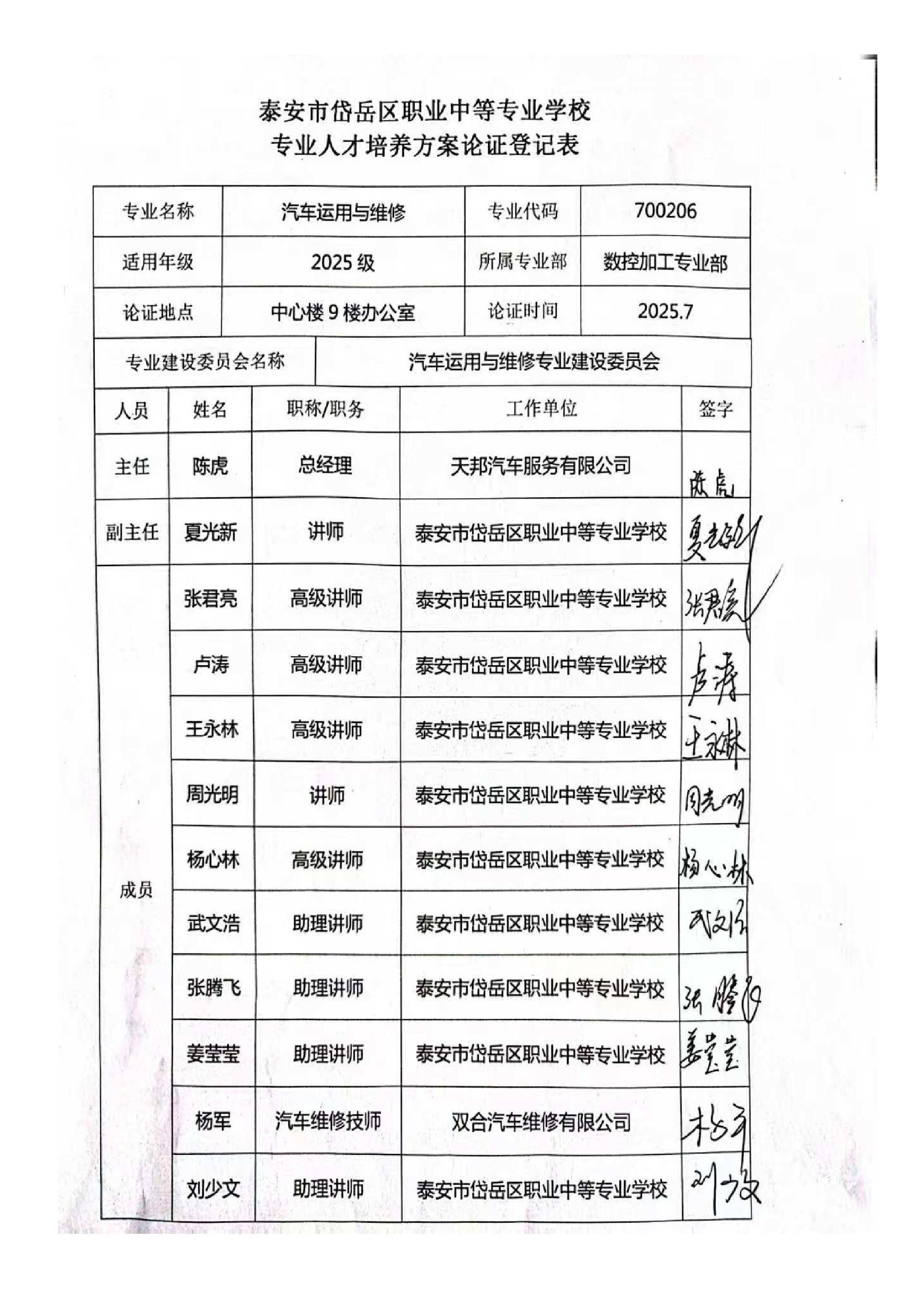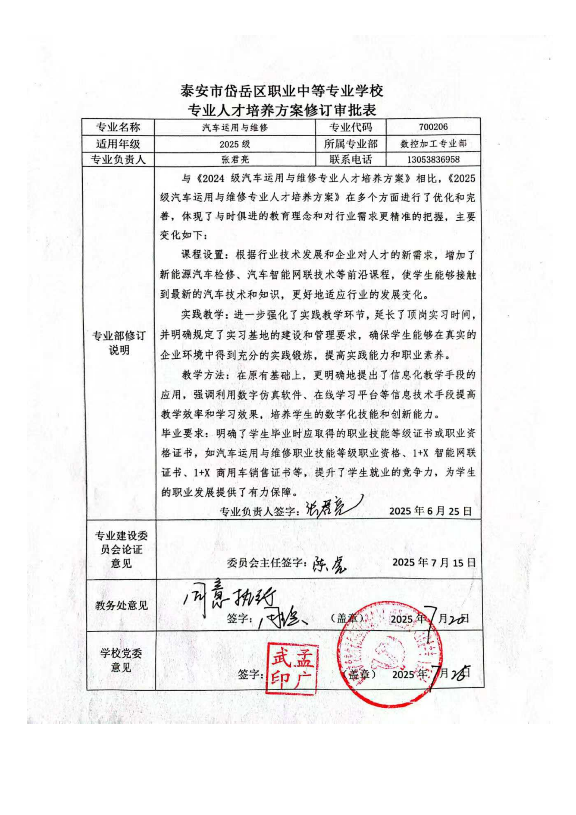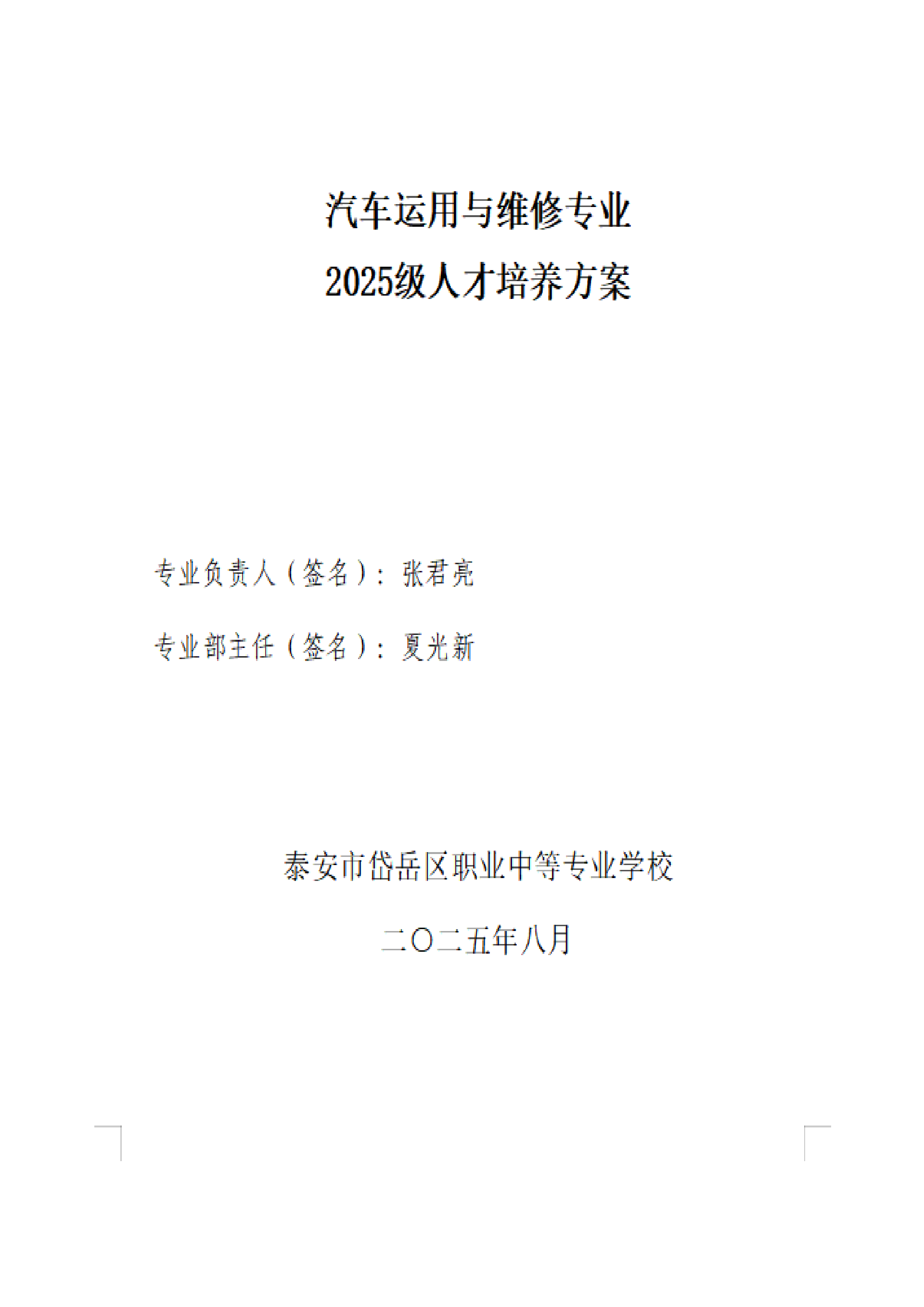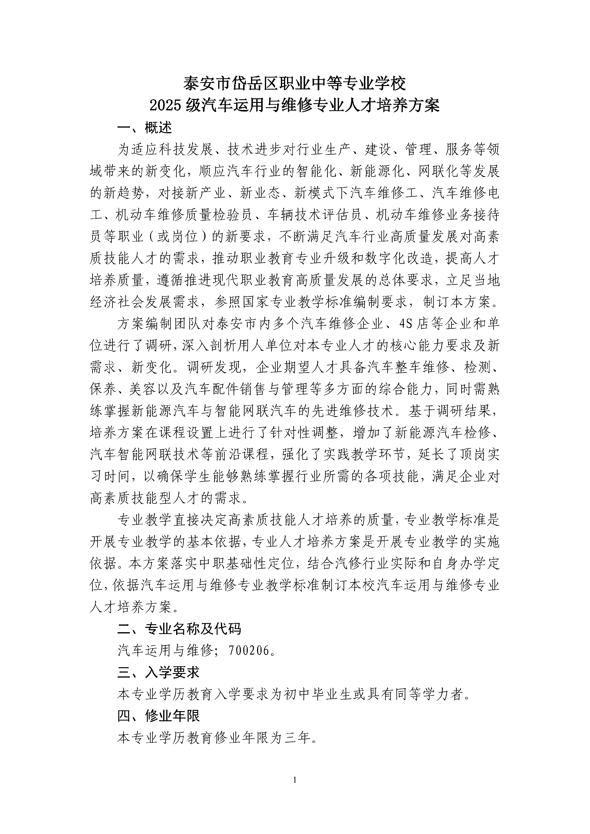 2025级汽车运用与维修人才培养方案